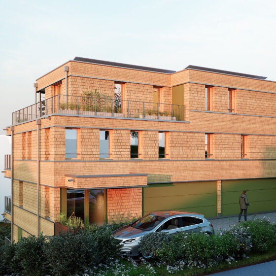 Es entstehen zwei 2.5 sowie zwei 3.5 Zimmer-Mietwohnungen, welche alle mit einem durchgehenden Balkon zum Wildbach ausgerichtet sind und einen freien Blick ins Grüne gewähren. Die grosszügige Attika-Maisonette-Wohnung überzeugt mit einer sehr einladenden Terrasse. Die Hanglage am Bach wird aufgenommen und das Gebäude optimal platziert, so dass einerseits mit der ebenerdigen Garage nur ein minimaler Aushub nötig wird und andererseits mit der Orientierung nach Süden ein grünes Reich mitten im Zentrum entsteht.